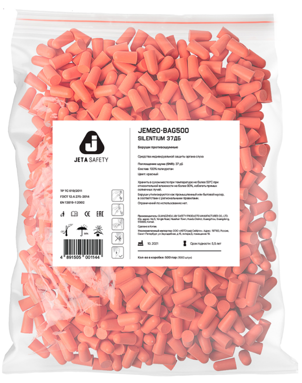 Противошумные беруши (37 дБ) арт JEM20-bag500(500пар/упак)
