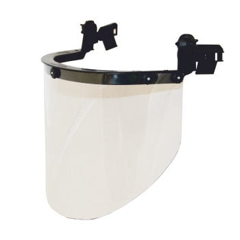 крепление щитка к защитной каске осуществляется за счет подъемно-фиксирующего устройства, изготовленного из холодо- и термостойкого материала, устойчивого к износу и гарантирующего надёжную фиксацию лицевого щитка в двух положениях “вверх-вниз”. Конструкция позволяет одновременное ношение наушников противошумных за счет применения специальных адаптеров;
