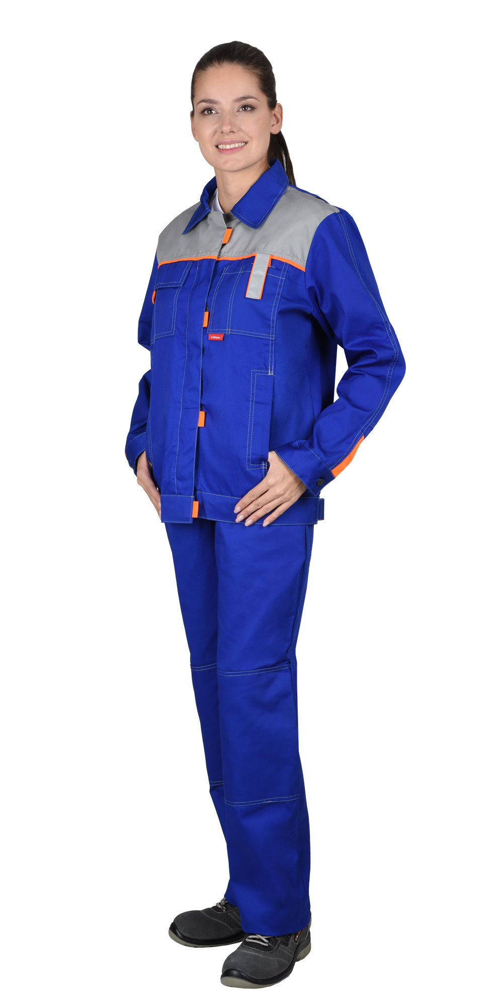 Костюм женский СИРИУС-ФАВОРИТ с брюками, васильковый/св.серый