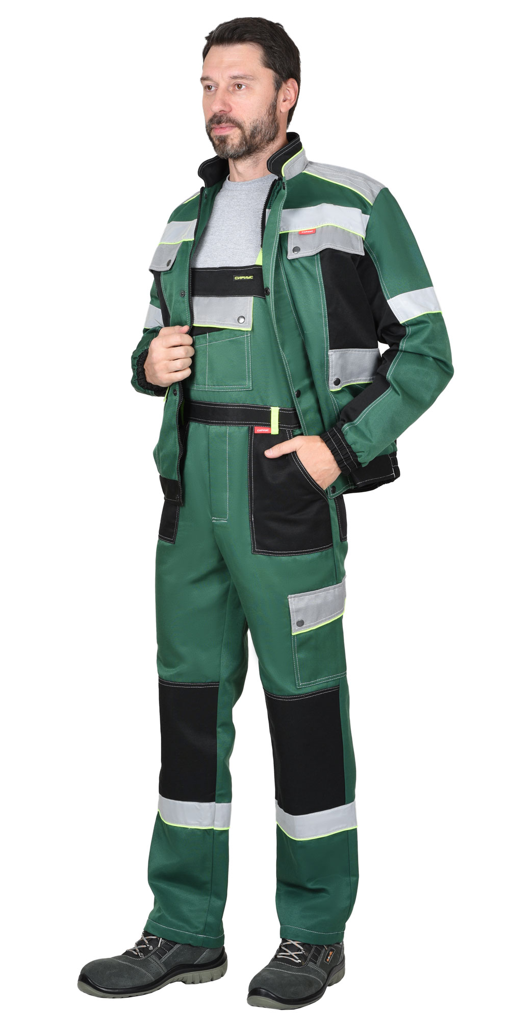 Костюм СИРИУС-ПОЛИНОМ с п/к, зеленый/черный/св.серый