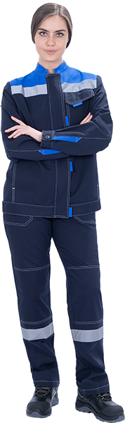 Костюм состоит из куртки и брюк. В костюме используется световозвращающая полоса 50 мм.