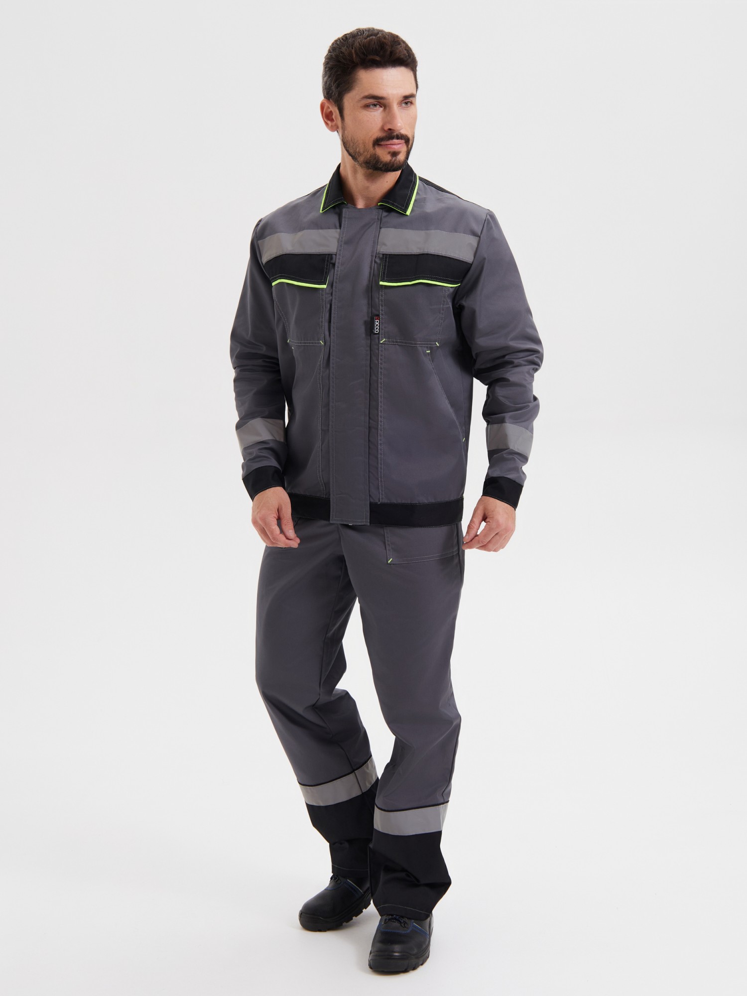Костюм СИСТЕМА с брюками, т.серый/черный/лимонный