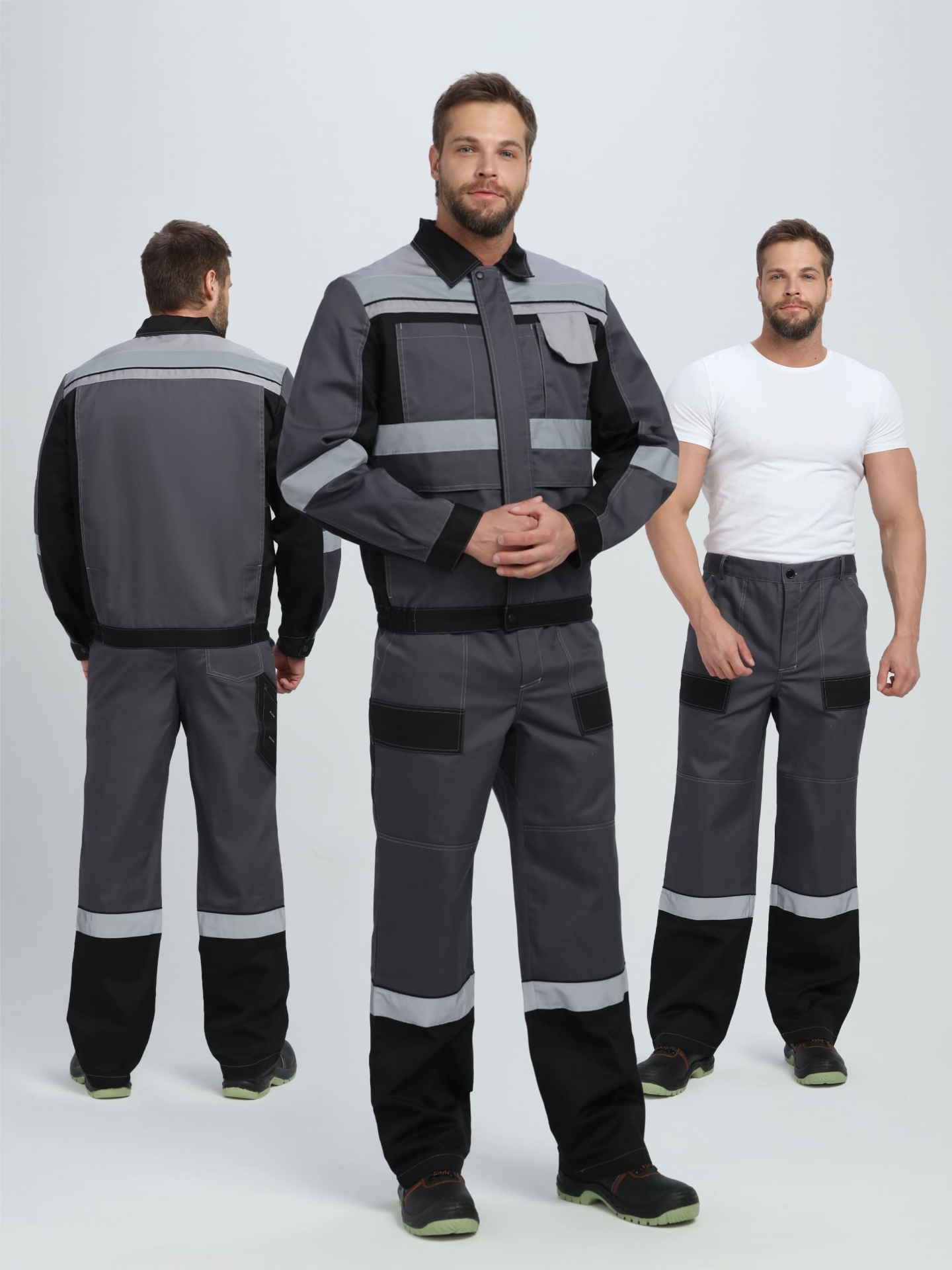-Цвет: темно-серый/черный/светло-серый (куртка и брюки)