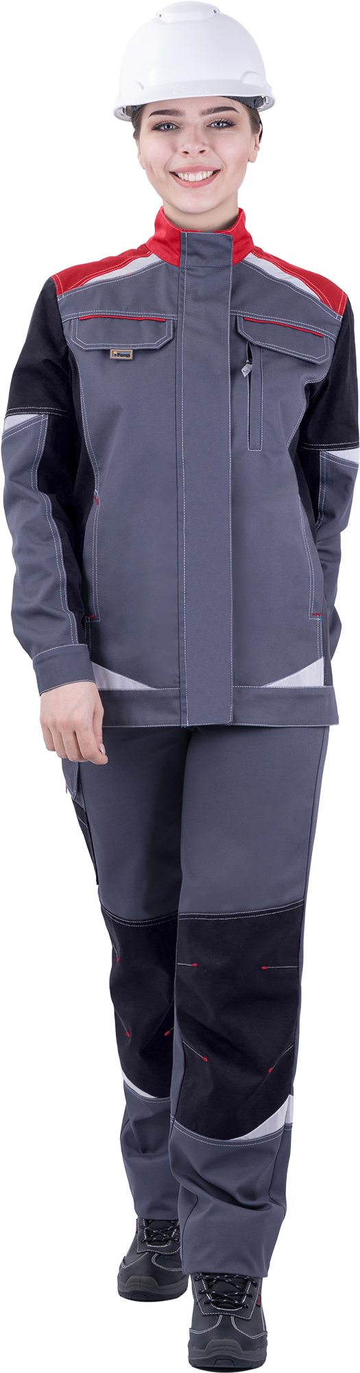 Куртка женская ТУРБО SAFETY, серый/черный/красный