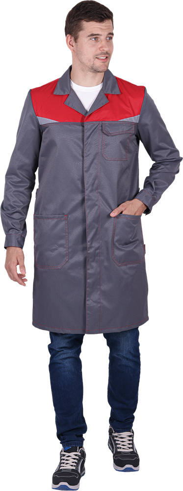 Халат КМ-10 ЛЮКС, серый/красный