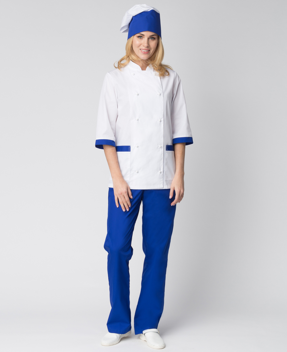 Костюм женский повара Гастроном тк.ТиСи цв.белый/васильковый