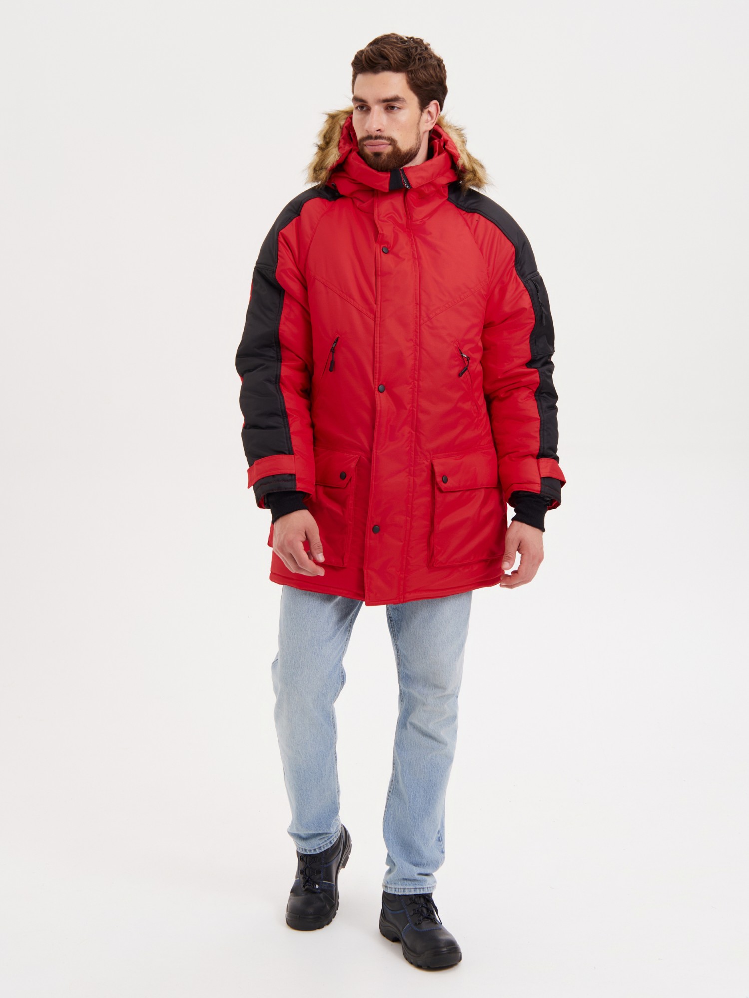 - утепленные флисом нагрудные и боковые объемные карманы, накладной карман на левом рукаве, внутренние карманы, под ветрозащитным клапаном – потайной карман с молнией (для планшета и документов формата А4)