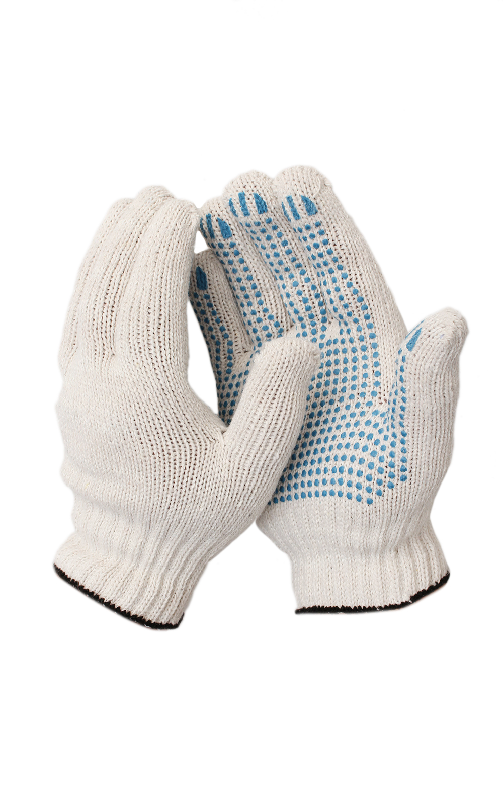 Перчатки х/б 8 нитей 7,5кл. ЛЮКС с ПВХ ТОЧКА, белые