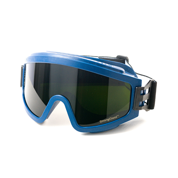 Очки с непрямой вентиляцией с панорамным защитным стеклом-светофильтром тёмно-зеленого цвета из поликарбоната (РС StrongGlass) с влагостойким, двусторонним суперпрочным, твердым и одновременно незапотевающим покрытием (без потери свойств от времени). Обеспечивают защиту глаз от высокоскоростных летящих частиц со среднеэнергетическим ударом, абразива, капель жидкостей (в т.ч. химических растворов), УФ-излучения, повышенная защита от искр и брызг расплавленного металла и высокой температуры.