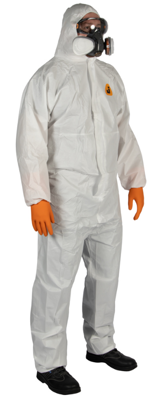 Защитный комбинезон из нетканого материала. Комбинезон предназначен для защиты от брызг жидкостей, кислот, щелочей, масел, воды, а также пыли и твердых частиц. Выпускается в фирменной розничной индивидуальной упаковке с подвесом.