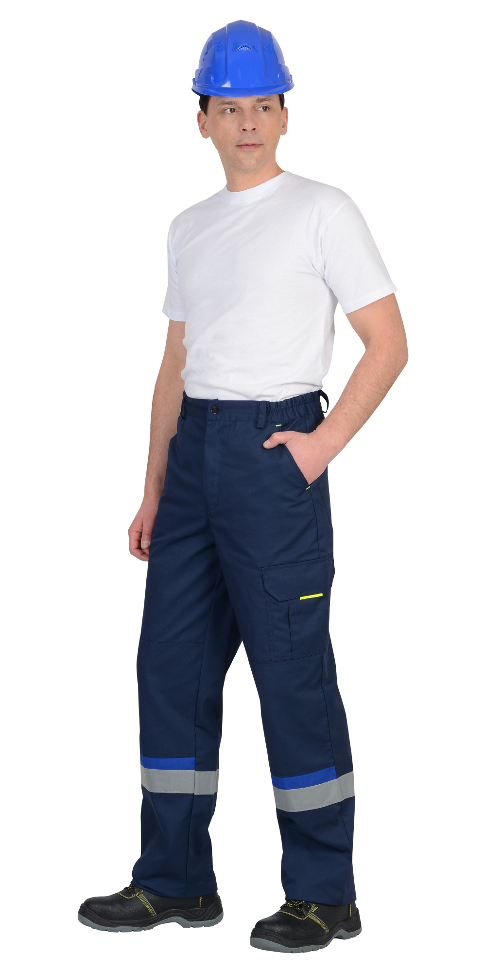 - брюки с застёжкой спереди на молнию, с внутренними боковыми карманами, с наколенниками, с накладным карманом на левом боковом шве с клапаном на липучке с патой, с двумя карманами на задних половинках и карманами для инструментов.
