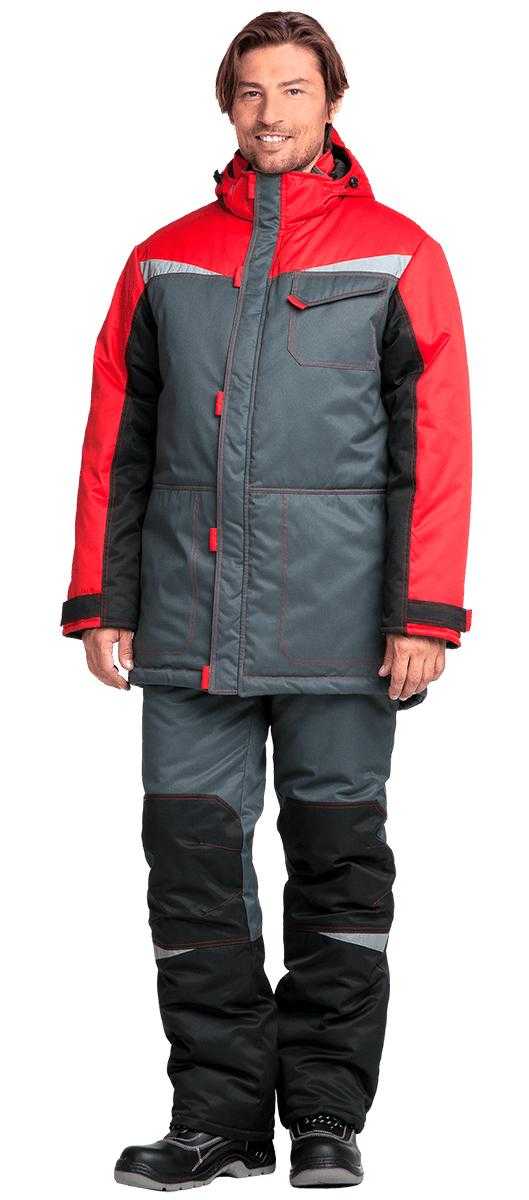 Костюм утепленный КМ-10 ЛЮКС с п/к, серый/черный/красный