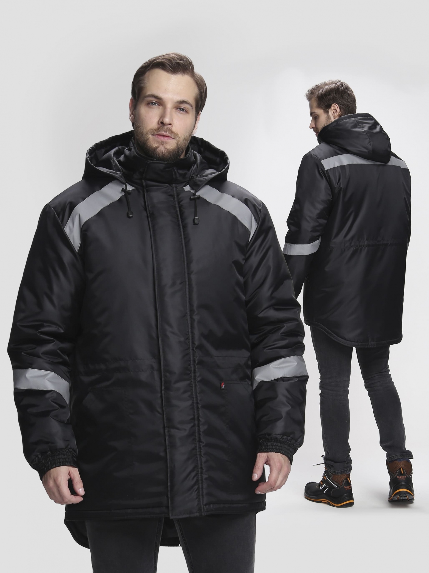 Утеплитель: "Синтепон" 360 гр/м2 спинка и полочки, 240 гр/м2 рукава, 120 гр/м2 капюшон