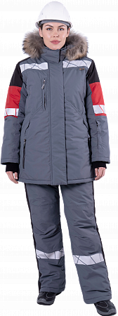 Куртка женская утепленная ХАЙ-ТЕК SAFETY, серый/черный/красный