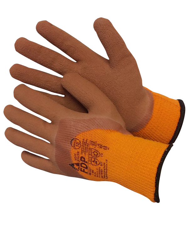 Оранжевые зимние перчатки из смеси акриловой и полиэстеровой пряжи. Перчатки обеспечивают надежную защиту от холода до -15 С. Основа перчаток, состоящая наполовину из акрила и наполовину из полиэстера, обеспечивает отличную теплоизоляцию.Перчатки покрыты текстурированным вспененным латексом на ¾ модели.Данное покрытие:обеспечивает высокую защиту от грязи и влаги с тыльной стороны ладони;дополнительная защита от истирания;значительно улучшает сцепление с любой поверхностью;обеспечивает дополнительную гибкость и эластичность при работе в низких температурах.Яркая оранжевая расцветка перчаток улучшает визуализацию процессов работы, что повышает ее безопасность. Подобрать размер просто: под цветным оверлоком модели находится ярлык с индикацией размера.
